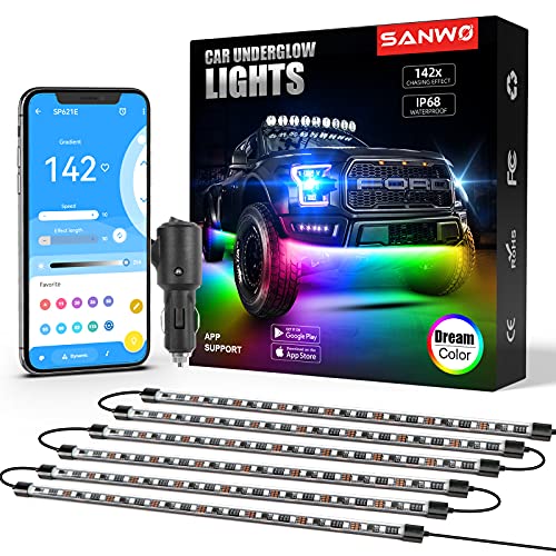 sears Car Underglow Lights, 10pcs 12V Dream Color Neon Underglow Kit for Car, APP Control Strip Led Lights for Car Exterior, 16 Million Colors Chasing Waterproof Under Glow Light Kit for Cars Trucks Boats